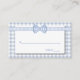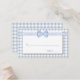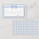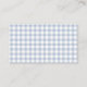 Söta land chic bröllop eskortera platskort, som görs i en ljusblå och vit schackad gingham mönster, med ett vitt textområde. Bilder av ett ljusblått och vitt gingham-band och bågsträckning över överkanten. Matchande bröllop-produkter finns tillgängliga.