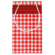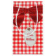 Röd och vit gingham med båge och märkre. Anpassa mottagarens namn på den ovala märkrn.