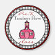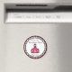 En magnet för lärare med logotypen Rosa Schoolhouse inuti en cirkelformad svart gingham ram med röd trim. Svart och röd text lyder: "Pre-K Teacher har class."