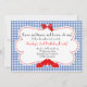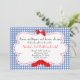 Perfekt enkel Trollkarlen från Oz-tema inbjudan. Landlig blå och vit gingham med röda rubinskor och söt liten röd rosett. Perfekt för vilken OZ-fest som helst.