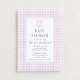 Fira din lilla i stil med den här gingham-rosa-bojinbjudan till babydusch. Med en mjuk rosa gingham-styrd bakgrund med ett känsligt bågmått är den här utformningen både söt och diskret, perfekt för att hedra ett flicka.