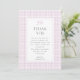 Visa er tacksamhet med den här gingham-rosa-buskduschen tack vare ditt kort. Med en mjuk rosa gingham-bakgrund och en delikat bockaccent är den här designen perfektens blandning av klassisk charm och elegans, perfekt för att fira en flicka-dusch. Personlig med ditt namn är det här tackkortet ett hjärtligt sätt att visa uppskattning för vänner och familj. Ett tidlöst och feminininskt stationär biet som dubblor som en vacker keepy från er speciella dag.