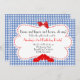 Perfektens enkla guide för Oz-temainbjudan. Land blå och vit gingham med röd ruby tofflor och söt liten röd båge. Perfekt för OZ party.