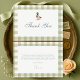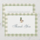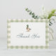 Gingham sage green mallard duck bow baby shower thank you card featuring a charming duck illustration with a soft sage green bow and classic gingham accents. Perfect for sending heartfelt thanks after your duck or woodland themed baby shower. Ideal for neutral, rustic, or country inspired celebrations. Editable text for easy personalization. Print-ready layout.