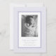 En ljuv lilac lila gingham ram omger ett foto från baby med namn och stat i detta födelsemeddelande. Perfekt för att dela med dig av ditt nya glädjespel.