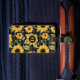 Den slående solrossen mönster står vackert mot en svart och grått gingham-bakgrund