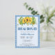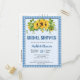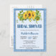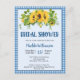 Gingham Sunblommor Rustic Inbjudningskort för möhippan - Vår rustik, inbjudningskort för möhippan har klara, vattenfärgade solblommor med klassisk blå och vit gingham. Vykort ingår i en samling.