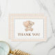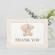 Express heartfelt gratitude with this We Can Bearly Wait baby shower thank you card, featuring an adorable teddy bear holding a heart and a soft beige gingham border. Designed in a neutral, minimalist style, this card is perfect for gender-neutral baby showers, teddy bear themes, and modern celebrations. Fully customizable with your name and message, it’s a sweet and timeless way to thank guests for celebrating this special moment.