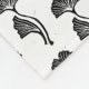 Minimalistiskt linjeutskrift av lodrät gingko löv i svartvitt.