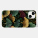 Ginkgo Leaf Pattern Teal Burgundy Design. This iPhone case features the popular ginkgo leaf motif in rich jewel tones of teal, burgundy and gold on an off-black background. A luxurious design with a dark, moody vintage feel.