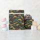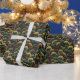 Ginkgo Leaf Pattern Teal Burgundy Design. This wrapping paper features the popular ginkgo leaf motif in rich jewel tones of teal, burgundy and gold on an off-black background. A luxurious design with a dark, moody vintage feel.