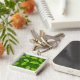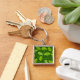Ginkgo mönster på mörk grönt fyrkantig silverfärgad nyckelring