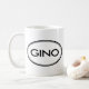 Kontrollera ut denna Gino mugg! Är ditt namn Gino? Eller har du en make, en pojkvän, en male familjemedlem eller en manlig vännen namngav Gino? Om så, är denna mugg "för det kända frimärket" exakt gåvan som du söker efter! Designen presenterar "Gino" i stor svart bokstäver som omges av två ovaler, en som är tunn, och en som är tjock.