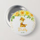 Den här söta och fantasifulla knappen kan anpassas med ett namn eller titel, som pappa, farfar, morfar, farbror, storebror osv. Designen har en bedårande giraff med en blomsterkrans och gula blommor med falskt guldglitterkonfetti. Texten kombinerar handskriven stil och sans serif-teckensnitt för en stilren och modern look. Detta är perfekt för en giraff-tematiserad babyfest.