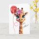 Fira med stil med detta söta julkort med giraffmotiv som visar ett fantasifullt safari-djur och en festlig ballong och det glada budskapet "Låt oss fira" på framsidan. Perfekt för födelsedagar, gratulationer eller någon annan glädjefull tillställning, är denna färgglada och roliga design idealisk för djurälskare, barn och alla som uppskattar en touch av lekfull charm.