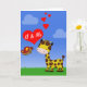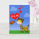 En söt och färgrik illustration med en giraff och en fjäril med röda hjärtan.