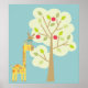 Giraff och kanin söta djur med äppelträd barnkammare väggkonst eller nurseries