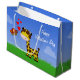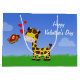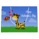 En söt och färglös Alla hjärtans dag-illustration med en giraffe och en fjäril med röda hjärtan och Valentines hälsning.