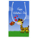En söt och färglös Alla hjärtans dag-illustration med en giraffe och en fjäril med röda hjärtan och Valentines hälsning.