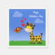 En söt och färglös Alla hjärtans dag-illustration med en giraffe och en fjäril med röda hjärtan och Valentines hälsning.
