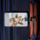 Bagagetagg med en närbild av en nyfiken giraffe.