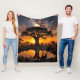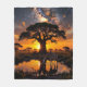 Giraffe dinking vatten i African Cosmic Sunset Fle Fleecefilt
