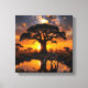 Giraffe dricker vatten i Cosmic African Sunset Canvastryck