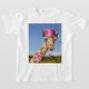 För en liten roligt, här är en giraff i en glatt rosa hatt och finare-halsband. Bilden skapades för hand och genereras inte av AI.