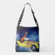 Giraffe i rymden - lustig illustration av en giraffe i sportbilar som flyter i rymden.