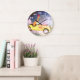 Giraffe i rymden - lustig illustration av en giraffe i sportbilar som flyter i rymden.
