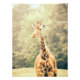Porträtt om en giraff i regnet, ett nyans av gröntens gult.