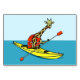 Ett lustigt exempel på en tecknad giraffe i en kajak. Den roliga kajakande giraffen bär ett rött liv jacka.