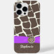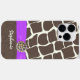 Trendig Brown Giraffe Animal Print Mönster Pinkish Lila Plum Ribbon och Faux Rhinestone iphone case