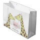 Giraffe par bröllop eller förlovning grattisar presentväska. Den här väskan är perfektens personlig som tillägg till en gåva till ett nyligen anställt par eller make och hustru. Det angivna namnen och året kan anpassas efter behov. Matchningskort och kopp finns också i denna illustrerade utformning.