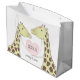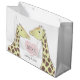 Giraffe par förlovning/ bröllop stor personlig presentväska. Denna romantiska och söta design är perfekten för en man och en kvinna som är nyupptagen eller gift. Du kan anpassa namnen och det angivna datumet efter behov. Matchningskort och gåvor finns också tillgängliga.