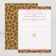 Giraffe Rosa Girl Baby Shower Bingo Inbjudningar