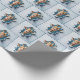 En giraffes huvuduppspelning kommer fram genom biet på t av papper och skapar en 3D-effekt mot en blå bakgrund