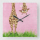 Giraffe with Daisy on Rosa Gingham Fyrkantig Klocka
