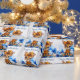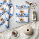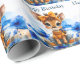 Giraffe with big puppy dog eyes wearing a polka dot bow and knitted jumper with blue poppies
