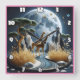 Giraffes roam a magic African night Fyrkantig Klocka