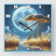 Giraffes roam under månbelysta himmel fyrkantig klocka