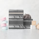 En svart och vit bild av giraffer bredvid vatten ger den här papprare figursättningen.