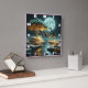 Två eleganter vandrar giraffer nära ett ljusstrålande träd av vatten, vilket påminner om den förtjusande andan i Afrikans vild nattetid, där naturen blomstrar i friska skönheter.