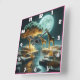 Giraffes under en glödande måne i Afrika Fyrkantig Klocka