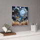 Under ett lysande måne står två stora giraffer på ett bra sätt, med hänsyn till det lukrativa afrikanska landskapet, inramat av sten och gräs. En serenanslutning till naturen dyker upp i skymningen.