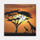 En giraffe från mor och hennes kalv förbereder sig för att slå sig ner för natten under en Acacia träd. Datorkonst av Kathie Miller.