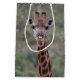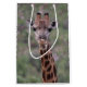 Headshoten fotograferar av en giraff som tittar direkt på kameran.