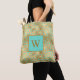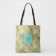 En vacker djurtemad design, denna toteväska har girafftryck med gyllene fläckar på en mintgrön bakgrund. En monograminitial, beställ din idag!