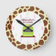 En ta tid på som presenterar en illustration av en grön ugn på, centrerar. Bakgrund är girafftryckmönster. Tal är rosa och gröna. Personifiera med ditt namn.