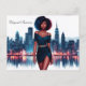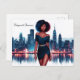 En vacker afrikansk-amerikansk flicka i en kvällskläck mot nattstadens bakgrund. Business dam i stil. (SNÄLLA! - Se även andra nya samlingar för fler val)